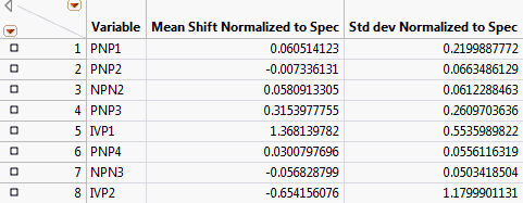 The Make Summary Table option produces a summary table that includes the variable’s name, its spec-normalized mean shift, and its spec-normalized standard deviation for further evaluation.