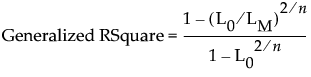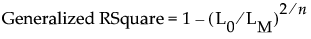 where λ is the value of the tuning parameter and φ is the nuisance parameter. See Hui et al. (2015).(Not available for Quantile Regression.) An extension of the RSquare measure that can be applied to general regression models. Generalized RSquare compares the likelihood of the fitted model (LM) to the likelihood of the intercept-only (constant) model (L0). It is scaled to have a maximum of 1. For distributions other than Binomial, the Generalized RSquare is defined as follows: