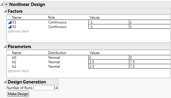 The Nonlinear Design window updates as you work through the design steps. The outlines, separated by buttons that update the outlines, follow the flow in Nonlinear Design Flow.