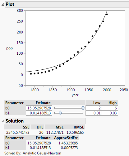 Note: Some models are linear in the parameters (for example, a quadratic or other polynomial) or can be transformed to be such (for example, when you use a log transformation of x). The Fit Model or Fit Y by X platforms are more appropriate in these situations. For more information about these platforms, see Model Specification in the Fitting Linear Models book and Introduction to Fit Y by X in the Basic Analysis book.