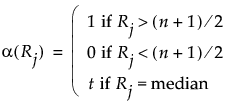 The midrank of the jth observation. The midrank is the observation’s rank if it is not tied and its average rank if it is tied.