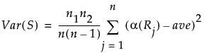 Define ave to be the average score across all observations. Then the variance of S is given as follows: