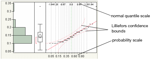 Use the Normal Quantile Plot option to visualize the extent to which the variable is normally distributed. If a variable is normally distributed, the normal quantile plot approximates a diagonal straight line. This type of plot is also called a quantile-quantile plot, or Q-Q plot.