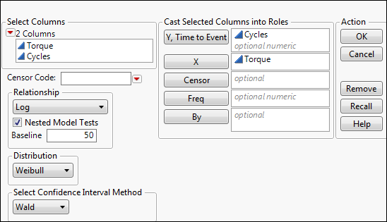 Select Analyze > Reliability and Survival > Fit Life by X.