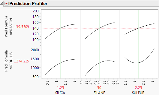 In JMP’s implementation, the Profiler first looks at the factor and response variables to see whether there is a Sigma column property (a specification for the standard deviation of the column, accessed through the Cols > Column Info dialog box). If the property exists, then the Prop of Error Bars command becomes accessible in the Prediction Profiler drop-down menu. This displays the 3σ interval that is implied on the response due to the variation in the factor.
