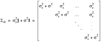 is the residual variance. Another option is to use the Compound Symmetry Unequal Variances structure in JMP, which allows the variance to vary across time points. This leads to a covariance matrix as follows: