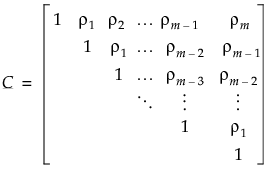 . The parameter ρ, where -1 < ρ < 1, is the correlation between two observations that are one unit of time apart. As the time difference between observations increases, their covariance decreases because ρ is raised to a higher power. In many applications, AR(1) provides an adequate model of the within subject correlation, providing more power without sacrificing Type I error control.In the Toeplitz structure, observations that are separated by a fixed number of time units have the same correlation. In contrast to the AR(1) correlation structure, the Toeplitz correlations at a fixed time difference are arbitrary. Denote the correlation for observations d units apart by