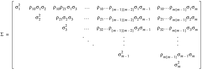 . The correlation matrix is as follows:The antedependence model is a general model that is flexible and allows the correlation structure to change over time. In this model, the correlation between two observations at adjacent time points j - 1 and j is unique and is denoted