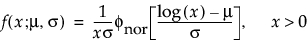 The lognormal family is parameterized by a location parameter, μ, and a shape parameter, σ. The lognormal pdf and cdf are given as follows, where the logarithm is to the base e: