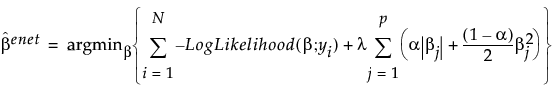 is the l1 penalty, λ is the tuning parameter, N is the number of rows, and p is the number of variablesThe Elastic Net combines both l1 and l2 penalties. Coefficient estimates for the Elastic Net are given by the following: