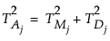 When a sample of mn independent normal observations is grouped into m rational subgroups each of size n, define T2M as the distance between the mean Yj of the jth subgroup and the target value. (T2M is equivalent to T2 in the previous sections for observations in rational subgroups.) You can also calculate T2 statistics related to the internal variability in each subgroup and the overall variability around the target value. The components of the T2 statistic are additive, much like sums of squares. Specifically, the following relationship is true for each of the m subgroups: