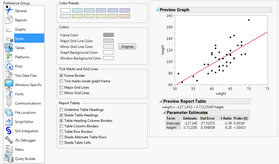 The Style pages enables you to customize colors, tick marks and grid lines, and report colors.