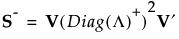 , where the diagonal elements of Diag(Λ) are replaced by their reciprocals. This defines a generalize inverse of S as follows: