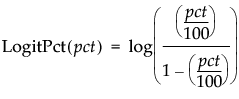 Calculates the logit as a percent for the selected column (where pct is a percent in the range of 0 to 100):