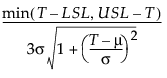 For a process characteristic with mean μ and standard deviation σ, the population-based capability indices are defined as follows. For sample observations, the parameters are replaced by their estimates: