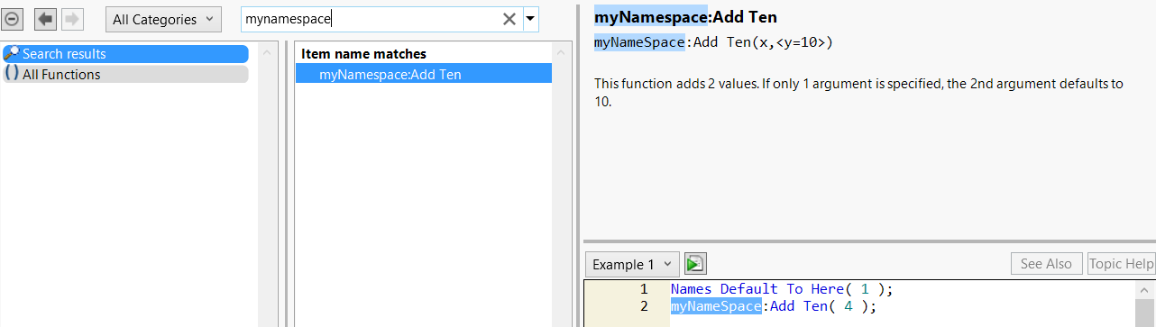 newAdd = New Custom Function( "myNamespace", "Add Ten", funcDef );