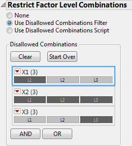 Figure 19.20 Completed Restrict Factor Level Combinations Panel