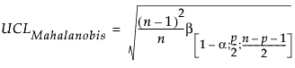 The UCL reference line (Mason and Young 2002) drawn on the Mahalanobis Distances plot is computed as follows: