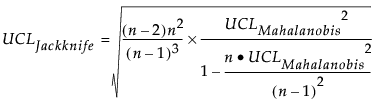 The UCL reference line (Penny 1996) drawn on the Jackknife Distances plot is calculated as follows: