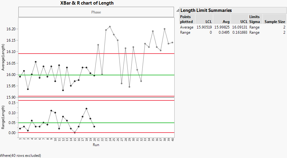 You have entered control limits for XBar and R-charts for the Length column. Now you can create a control chart.