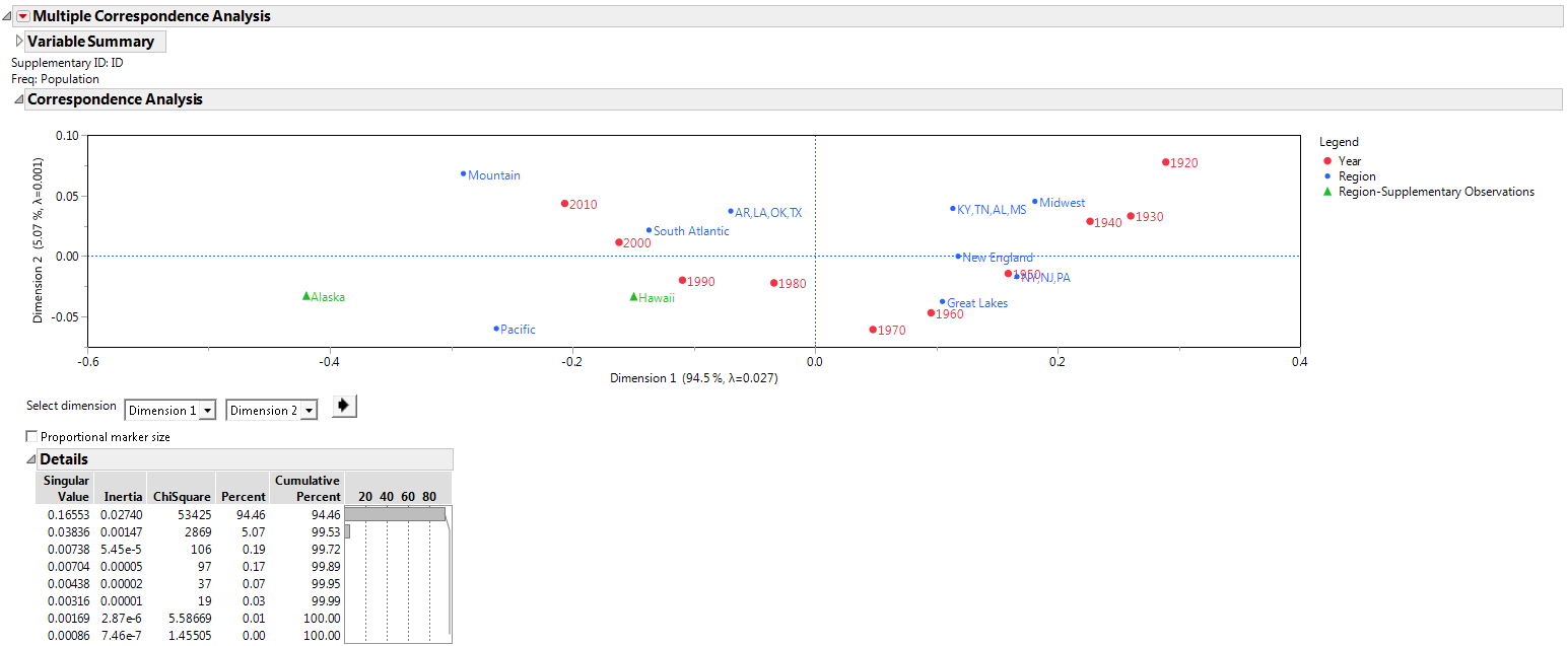 Select Help > Sample Data Library and open US Regional Population.jmp.