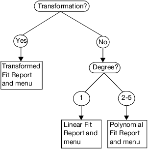 Depending on your selections in the Fit Special window, you see different reports and menus. The flowchart in Figure 4.37 shows you what reports and menus you see depending on your choices.