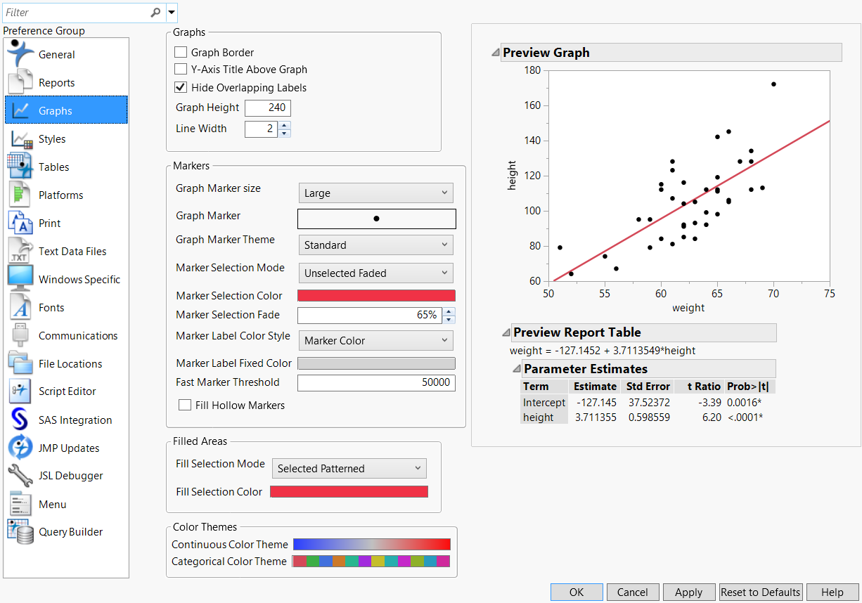 Select a default color theme for categorical data. The default theme is JMP Default. See