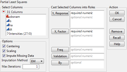 Select Analyze > Fit Model and select Partial Least Squares from the Personality menu. This approach enables you to do the following: |