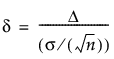 where δ represents Delta, Δ represents the shift, σ represents the process standard deviation, and n is the (common) subgroup sample size.
