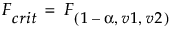 is the 1 - α quantile of the F distribution with ν1 and ν2 degrees of freedom.