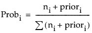 where the summation is across all response levels; ni is the number of observations at the node for the ith response level; and priori is the prior probability for the ith response level, calculated as follows: