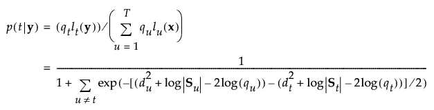 See Table 4.2 for notation. The Mahalanobis distance from an observation y to group t is defined as follows:
