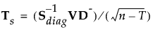 where S-p is a generalized inverse of the pooled within-covariance matrix for the original data that is calculated using the SVD.
