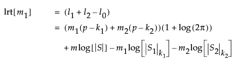 Denote the maximum of twice the log-likelihood function for the subsequent m2 = m - m1 observations by l2, and the maximum of twice the log-likelihood function for all m observations by l0. Both l2 and l0 are given by expressions similar to that given for l1.