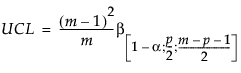 When computing Phase II control limits, new observations are independent of the historical data set. In this case, the upper control limit (UCL) is a function of the F distribution and partially depends on the number of observations in the historical data set from which the targets are calculated. The UCL is defined as follows: