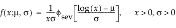 The lognormal family is parameterized by a location parameter, μ, and a shape parameter, σ. The lognormal pdf and cdf are given as follows, where the logarithm is to the base e:
