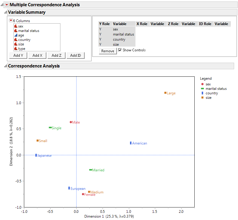 Multiple Correspondence Analysis Report with Show Controls Selected