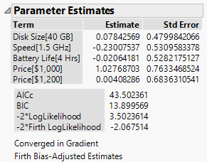 A column called Std Error^2 is added to the data table. Its values will serve as your estimates of the prior variance for the choice model parameters.