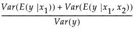 Consider a simple example with two factors, x1 and x2. Then the Total Effect importance index for x1 is an estimate of the following: