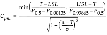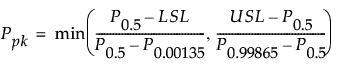 Denote the α*100th percentile of the fitted distribution by Pα. Then Percentile method capability indices are defined as follows: