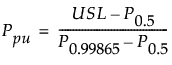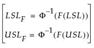 Let F denote the fitted distribution for a process variable with lower and upper specification limits given by LSL and USL. Define equivalent standard normal specification limits as follows: