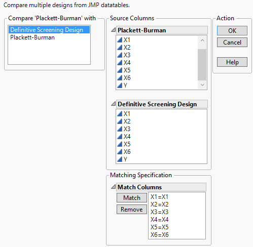 In the Plackett-Burman data table, select DOE > Design Diagnostics > Compare Designs.