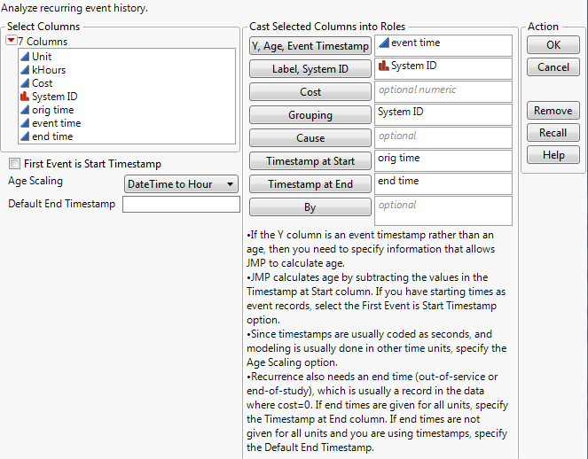 In the Recurrence Model Specification, select the Loglinear Nonhomogeneous Poisson Process.