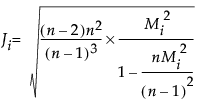 The Mahalanobis distance takes into account the correlation structure of the data and the individual scales. For each value, the Mahalanobis distance is denoted Mi and is computed as follows: