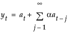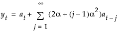 The smoothing equation, Lt = αyt + (1 – α)Lt-1, is defined in terms of a single smoothing weight α. This model is equivalent to an ARIMA(0, 1, 1) model where the following is true: