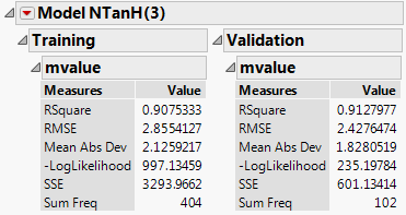 This example uses the Boston Housing.jmp data table. Suppose you want to create a model to predict the median home value as a function of several demographic characteristics. Follow the steps below to build the neural network model: