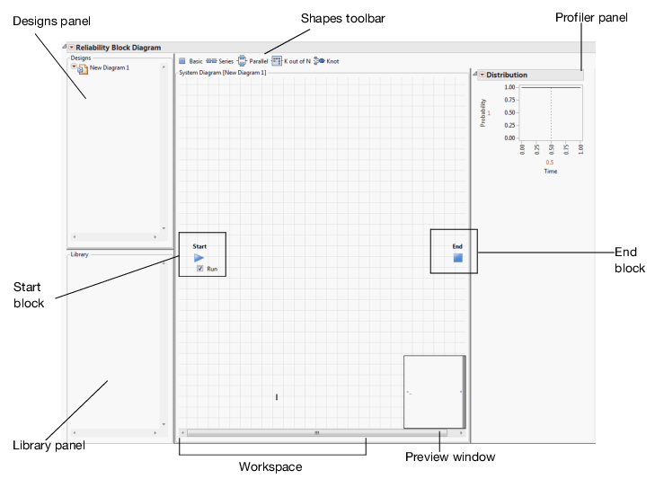 Select Analyze > Reliability and Survival > Reliability Block Diagram.