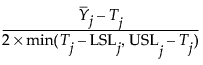 Note: If either LSLj or USLj is missing, twice the distance from the target to the nonmissing specification limit is used in the denominators of the Goal Plot coordinates.