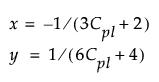 Note: If either Cpu or Cpl is less than -0.6, then it is set to -0.6 in the formulas above. At the value -2/3, the denominator for x assumes the value 0. Bounding the capability values at -0.6 prevents the denominator from assuming the value 0 or switching signs.