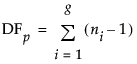 For the Pure Error DF, consider the cases where more than one observation has the same value for height. In general, if there are g groups having multiple rows with identical values for each effect, the pooled DF, denoted DFp, is as follows: